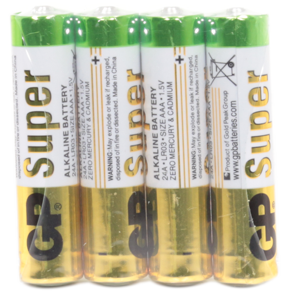 | | Батарейка GP Super 4шт AAA без блистера 1.5V щелочная GP Super AAA-LR03 – комплект из 4 батарей популярного формата ААА. Они обеспечивают долгую бесперебойную работу различных устройств.