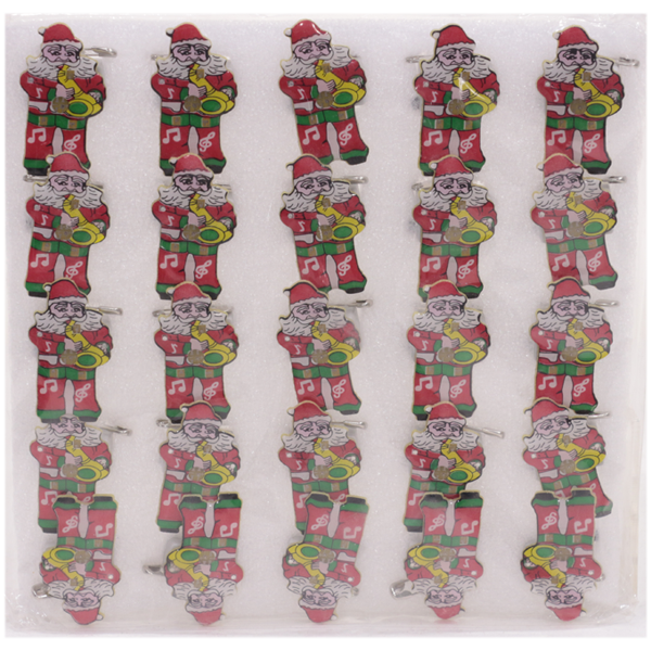 Добавьте нотку праздничного очарования в свои наряды с помощью яркого значка с восхитительным рождественским Санта Клаусом с саксофоном.
