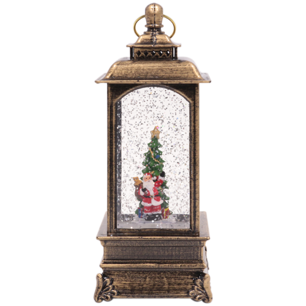 Новогодний фонарь имеет встроенный динамик и в музыкальном режиме воспроизводит все самые популярные новогодние композиции. При включении питания внутри загорается яркая подсветка и начинается круговорот блесток, подобно падающему снегу, в темноте это выглядит особенно красиво.